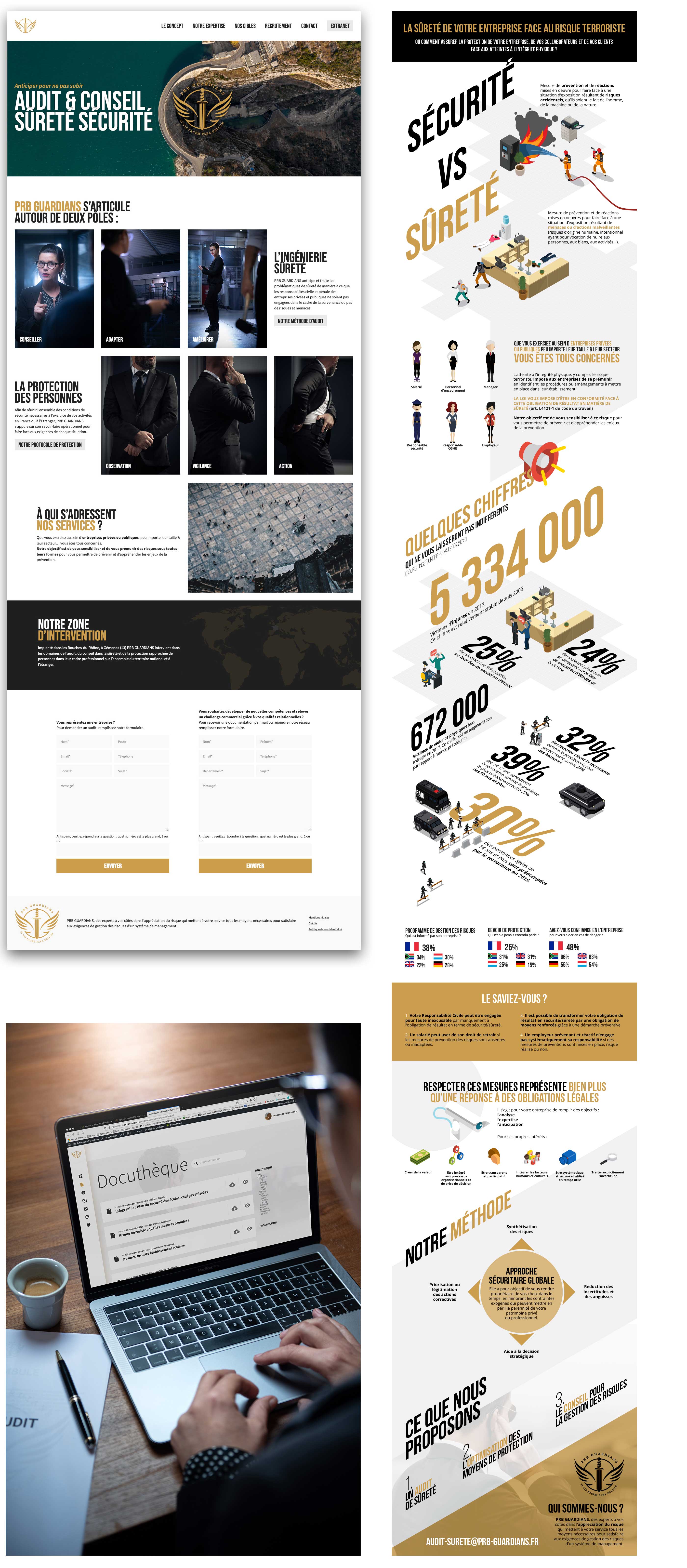 PRB Guardians, nous a contacté pour produire l’ensemble des supports nécessaires au lancement de leur franchise : Interview, site web grand public, plaquette de recrutement, infographie à destination des chefs d’entreprise, extranet pour les franchisés,…